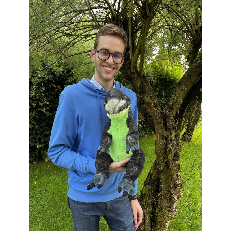 Il est cousu à partir d'une luxueuse peluche, somptueusement dense et douce, aux nuances de vert, et gris.