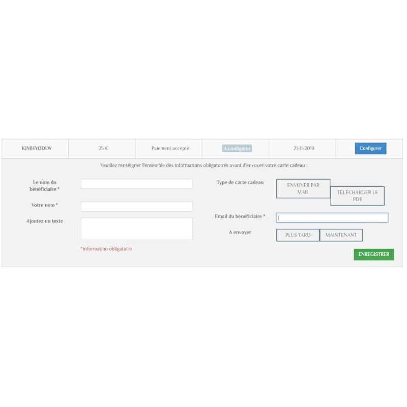 Cette Carte Cadeau a une valeur de 25 EUR.