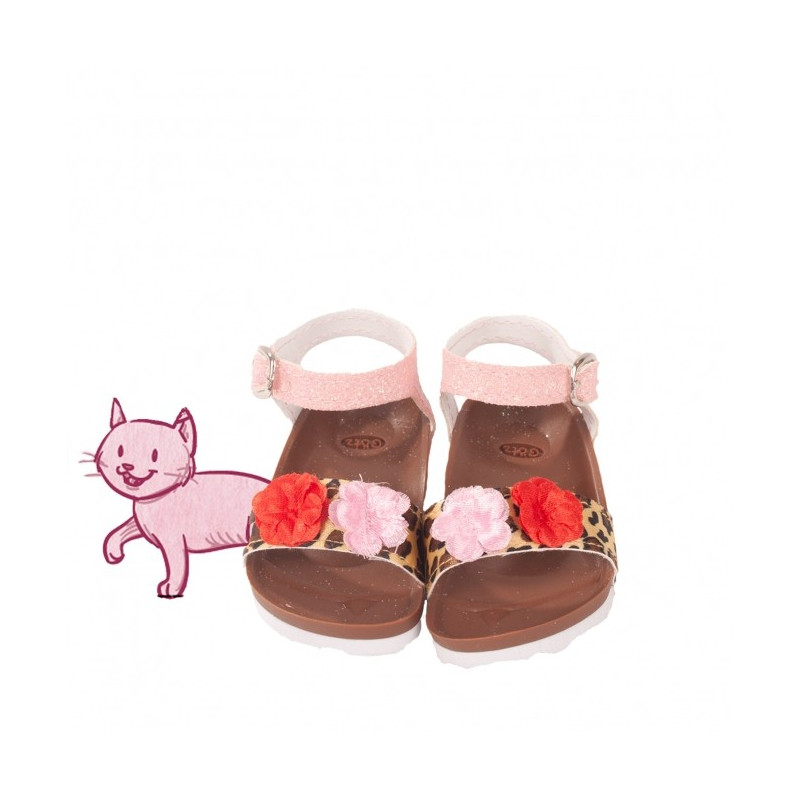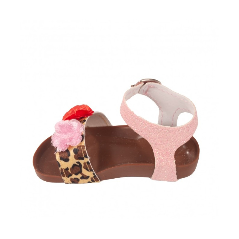 Vous trouverez des paillettes roses sur la partie cheville et du satin motif léopard sur l'avant-pied, souligné par de jolies fleurs.