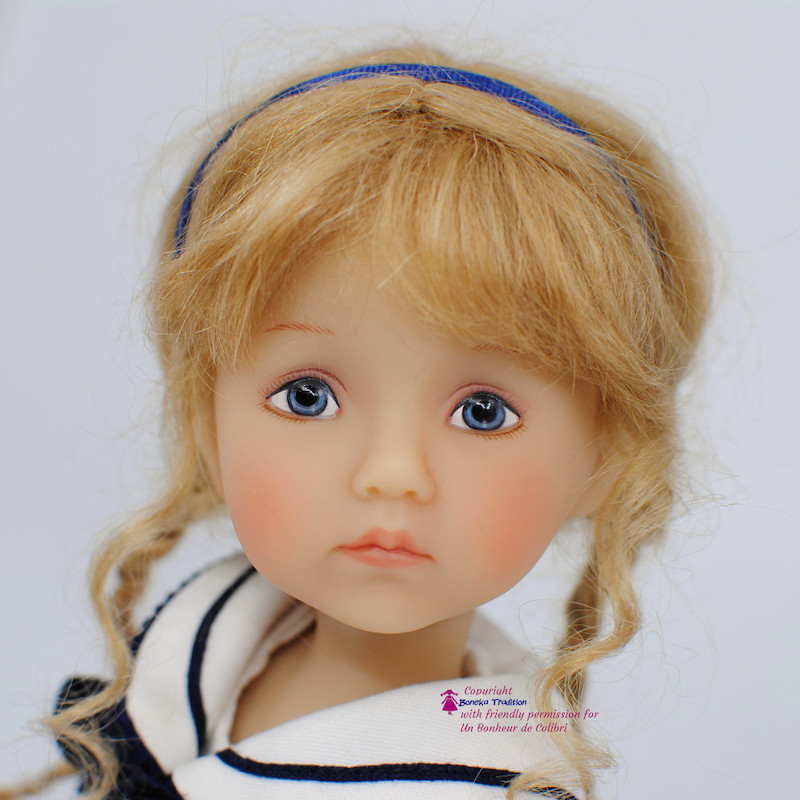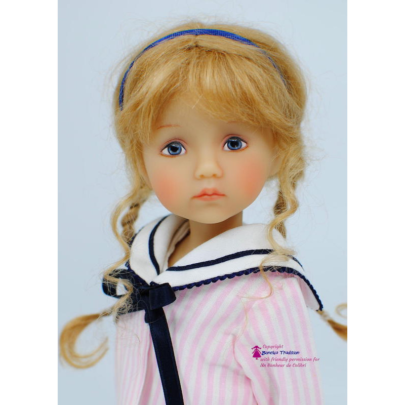 Manou, Monday Child - édition OOAK (unique) - a une perruque Blonde et les yeux bleus peints à la main.