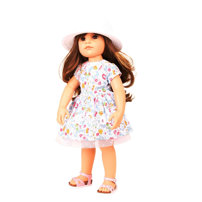 Notre Poupée Hannah Summertime (Edition 2016) - Götz - 50 Cm - 5 Articulations, a une longue chevelure brune et les yeux bruns.