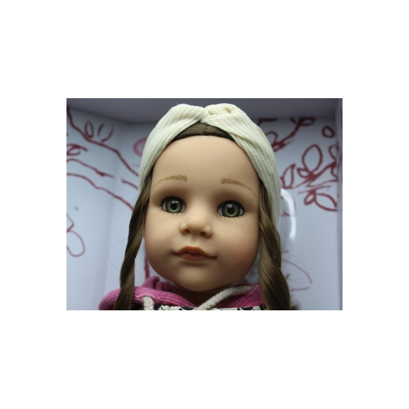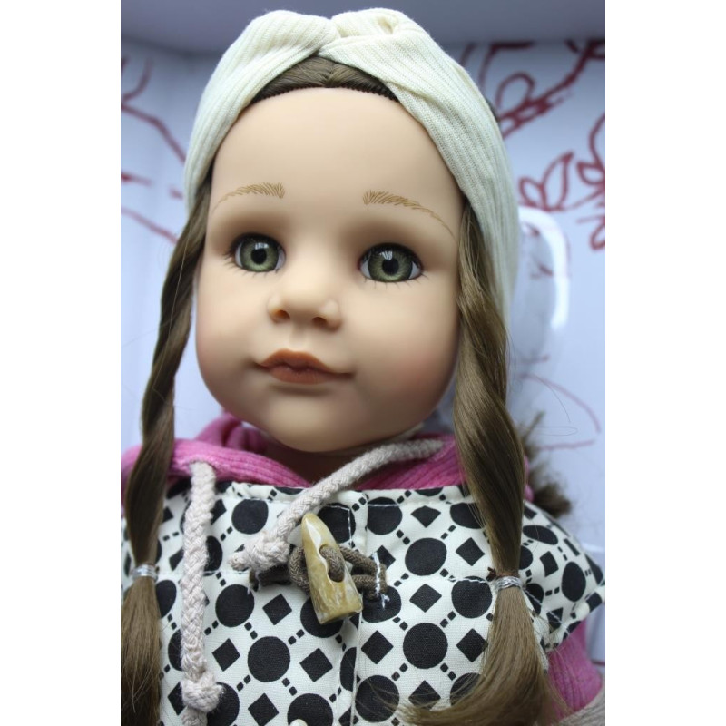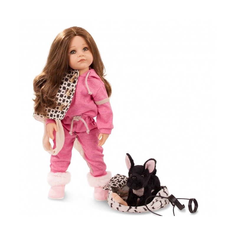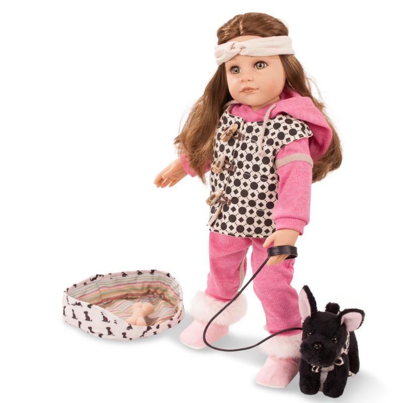 Notre Poupée Hannah et son chien noir (Edition 2022) - 5 Articulations, a une longue chevelure brune et les yeux gris-vert olive.