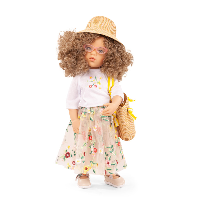 La Poupée Happy Kidz Mara (Moule de Hannah Asiatique au Ballet) a les cheveux châtain bouclés et les yeux olive.