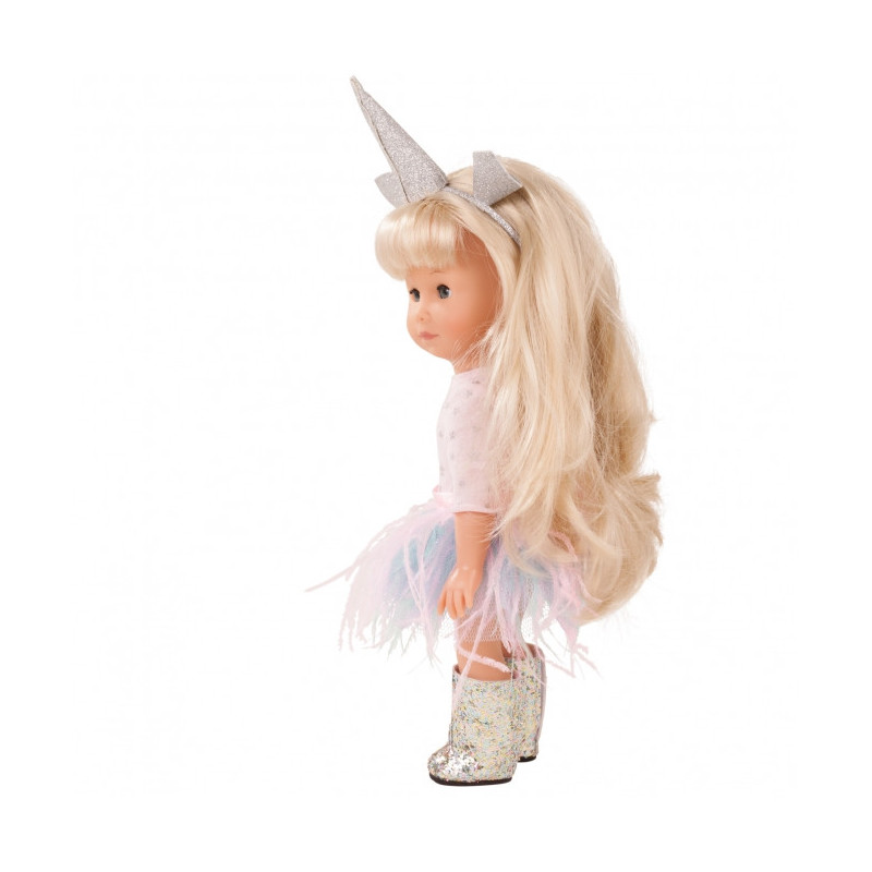 Notre Poupée la Licorne Mia (Just Like Me Edition 2018) - Götz - 27 Cm - 5 Articulations, a des longs cheveux blonds et les yeux bleus.