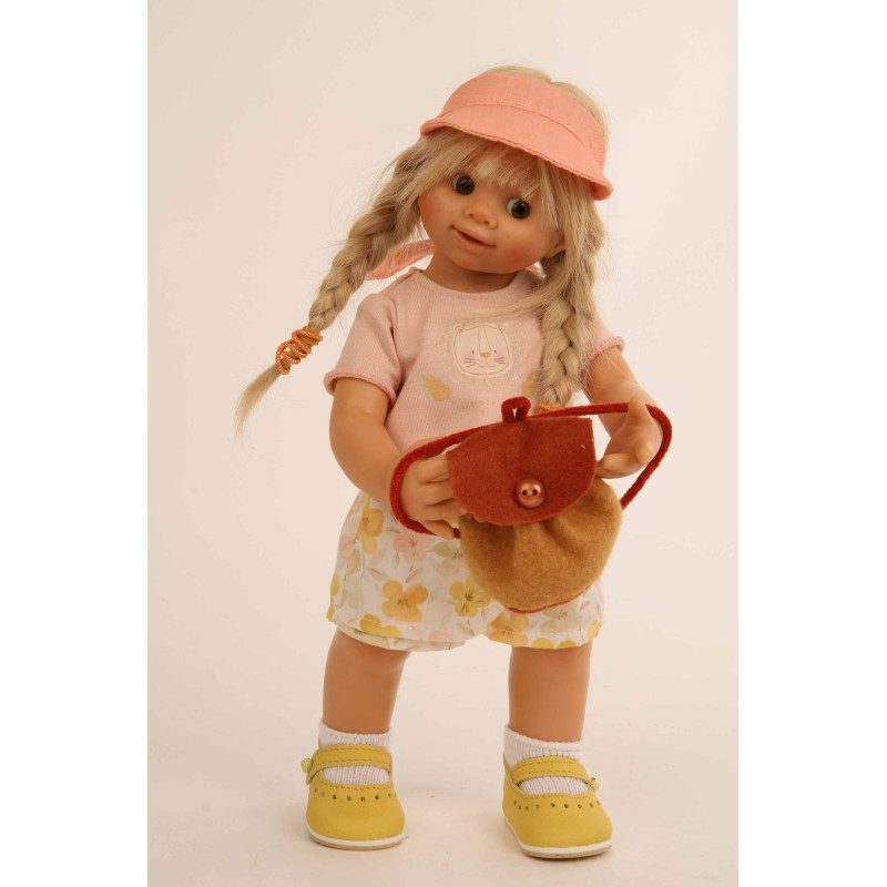 La poupée Frieda (petite Fille - Moule Annika) - a les cheveux blonds et les yeux noisette.
