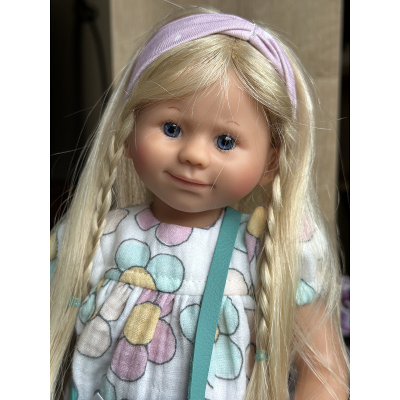 La poupée Florentine (petite Fille - Moule Toni) - a les cheveux blonds et les yeux bleus.