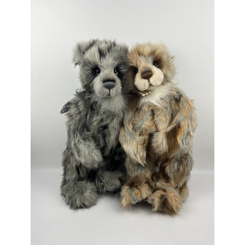 Heartwood et Charnwood sont entièrement articulés, fabriqués en peluche synthétique ultra-douce et dotés d'un accessoire en forme de nœud à carreaux autour du cou.