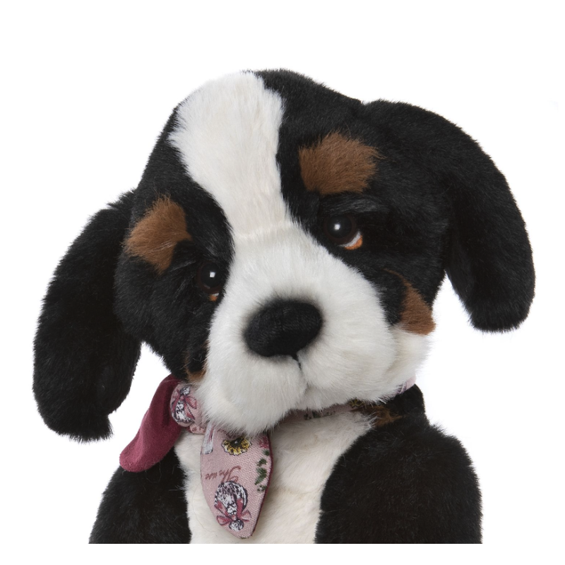 Son museau à poils blancs, met en évidence son petit nez noir (cousu à la main).