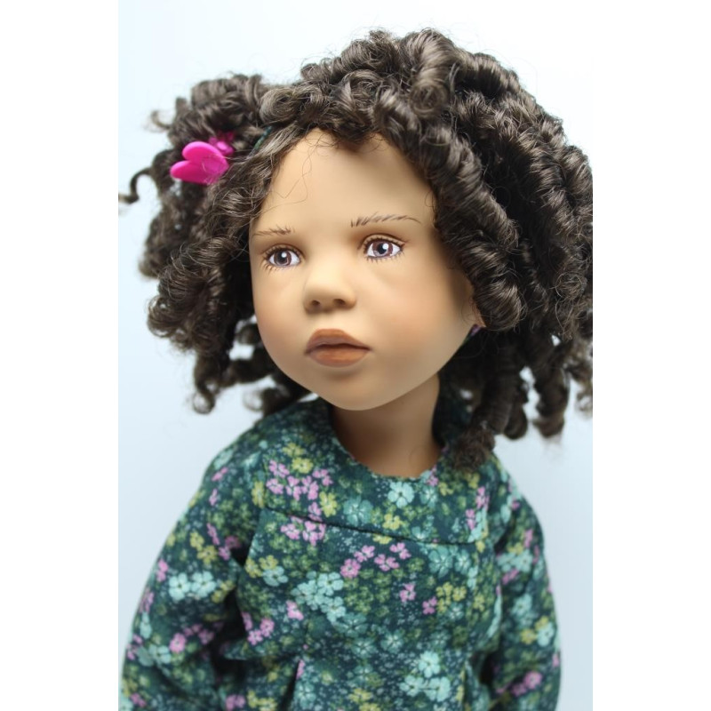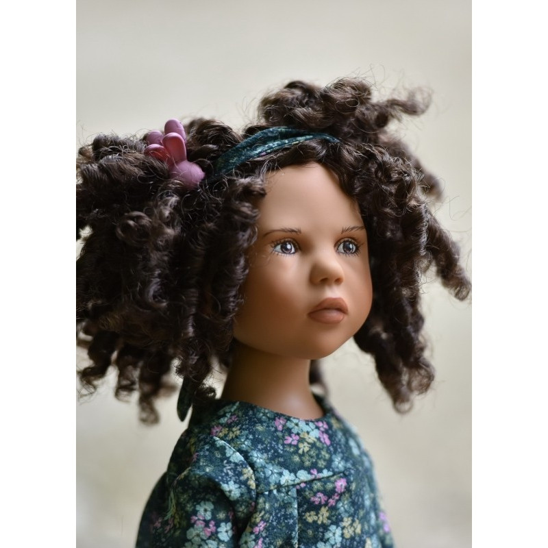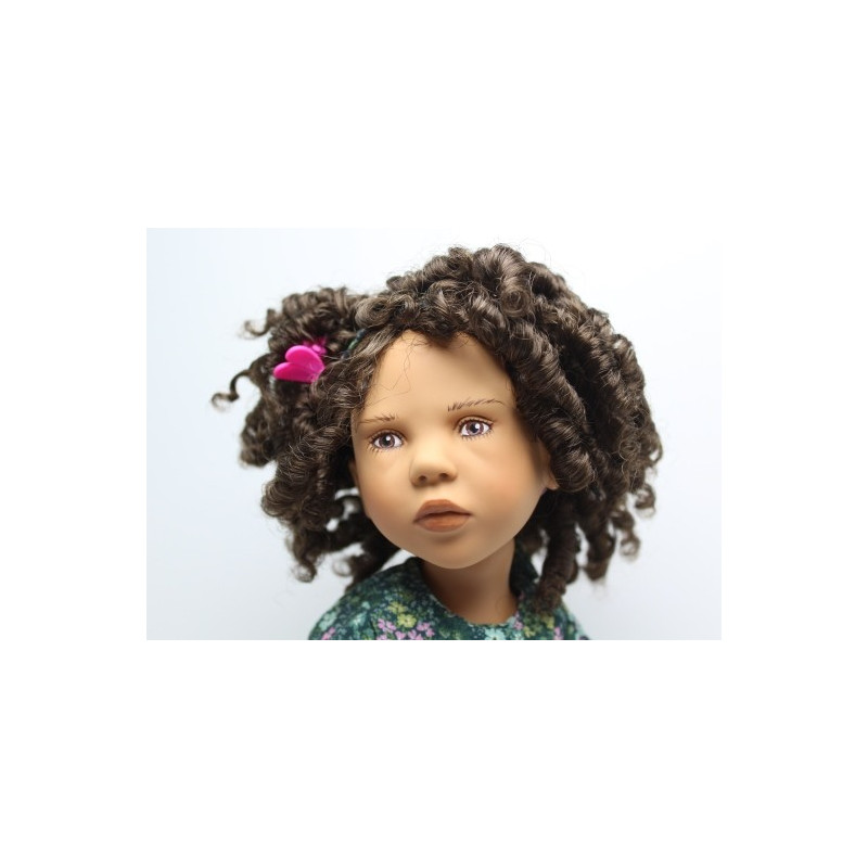 La poupée Anea - Moule 2020 (Comme Dea et Griet) - Teint Cappucino - a des cheveux bruns bouclés et les yeux bruns.