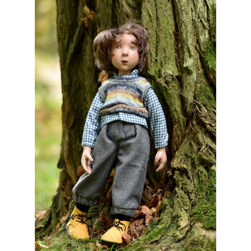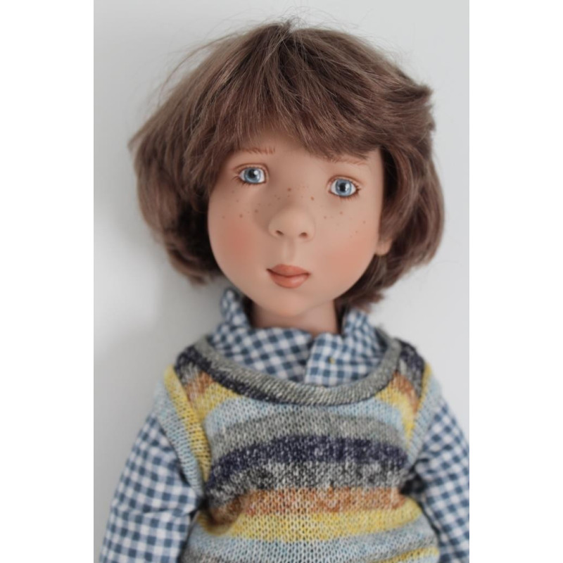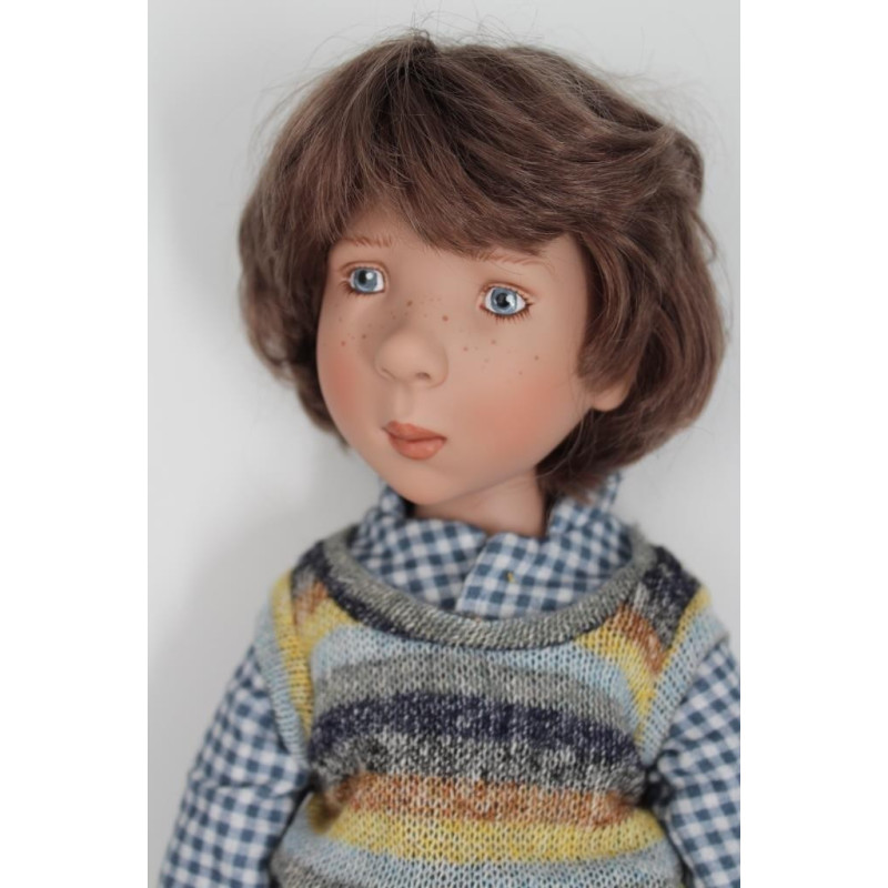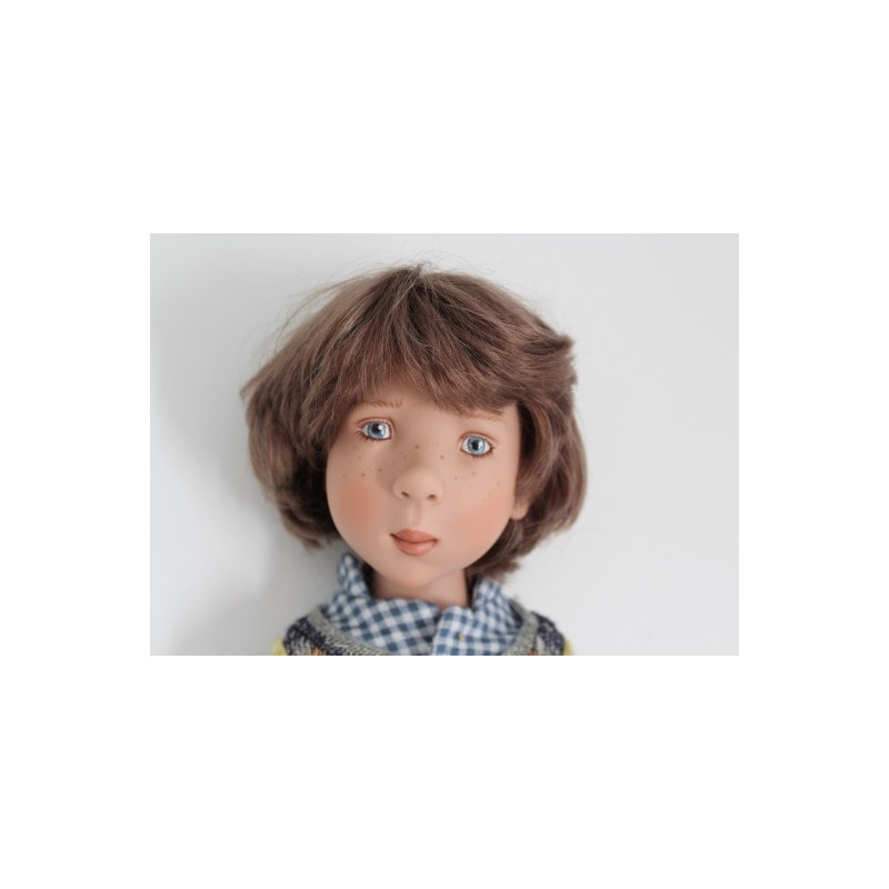 La poupée Aksel - Moule 2021 (Comme Norja, Ingried et Zenzi), a des cheveux bruns et les yeux gris-bleu.