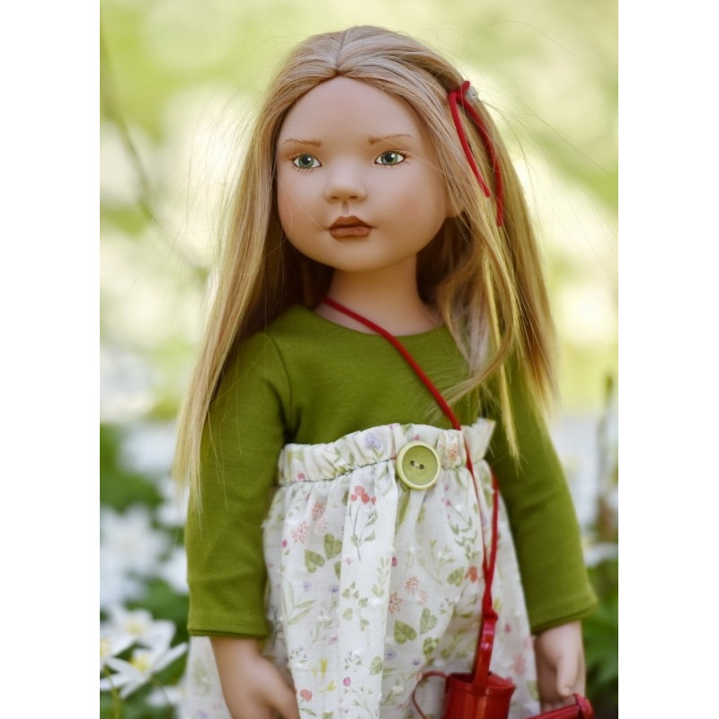 La poupée Audrey - Moule 2022 - a des longs cheveux blonds et les yeux verts.