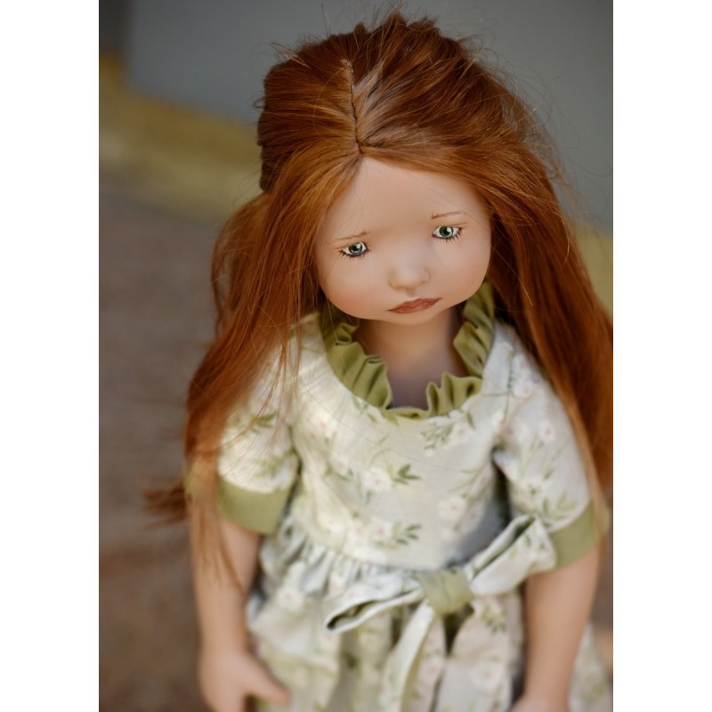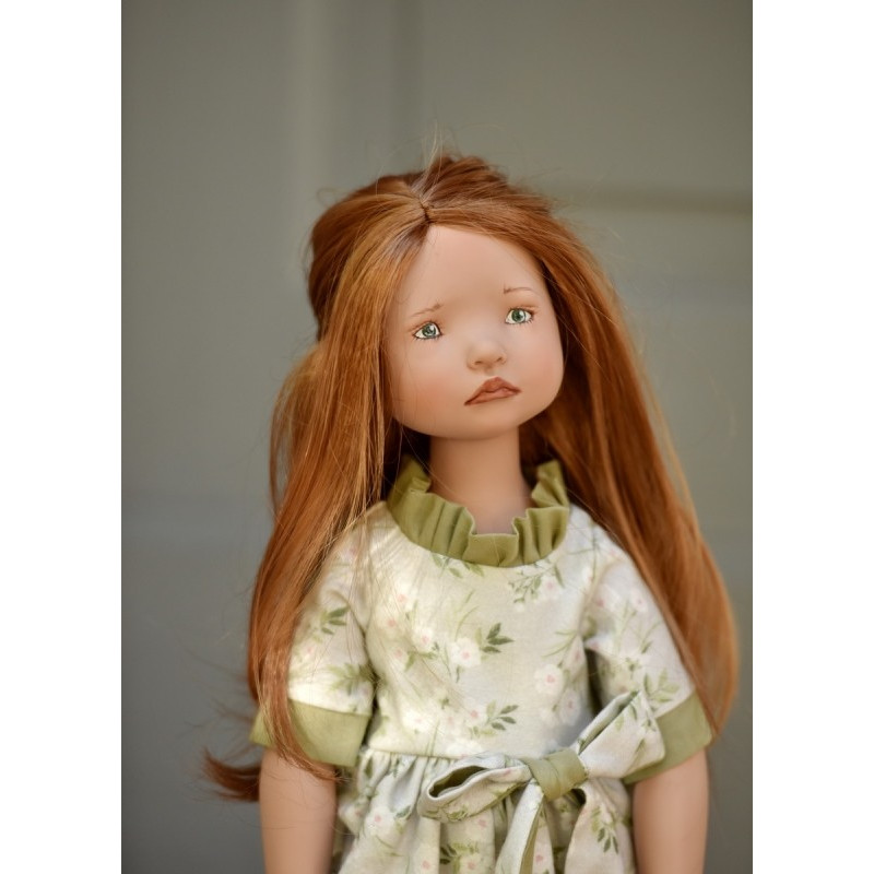 La poupée Linde - Moule 2022 (Comme L'Oie d'Or), a de longs cheveux roux et les yeux verts.