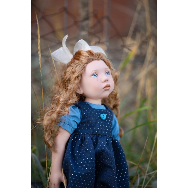La poupée Dajana - Moule 2023 - a les cheveux roux bouclés et les yeux bleu-gris.