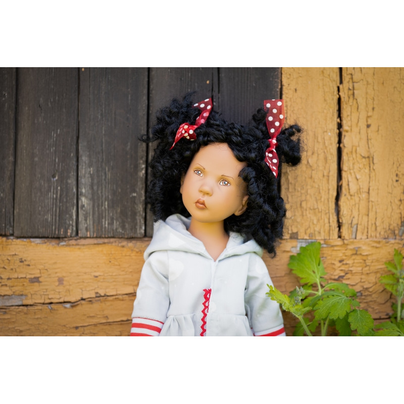 La poupée Cora au teint cappuccino - Moule 2018 (comme Astrid et Finja) - a des cheveux bruns et les yeux bruns.