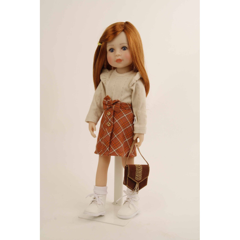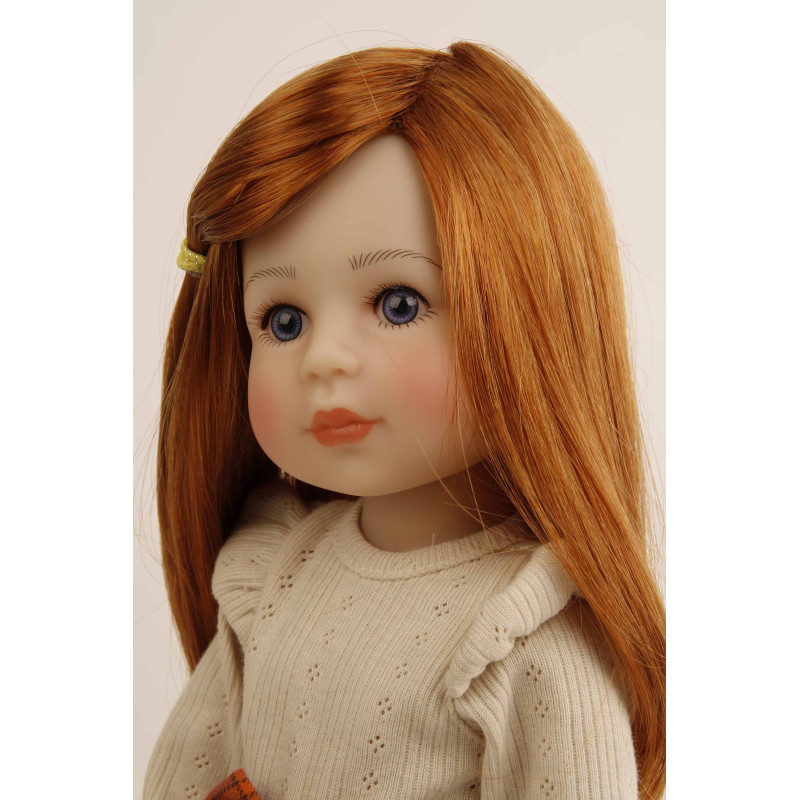 La Poupée Yella Rousse - 46 cm, a une longue chevelure rousse et les yeux bleus.