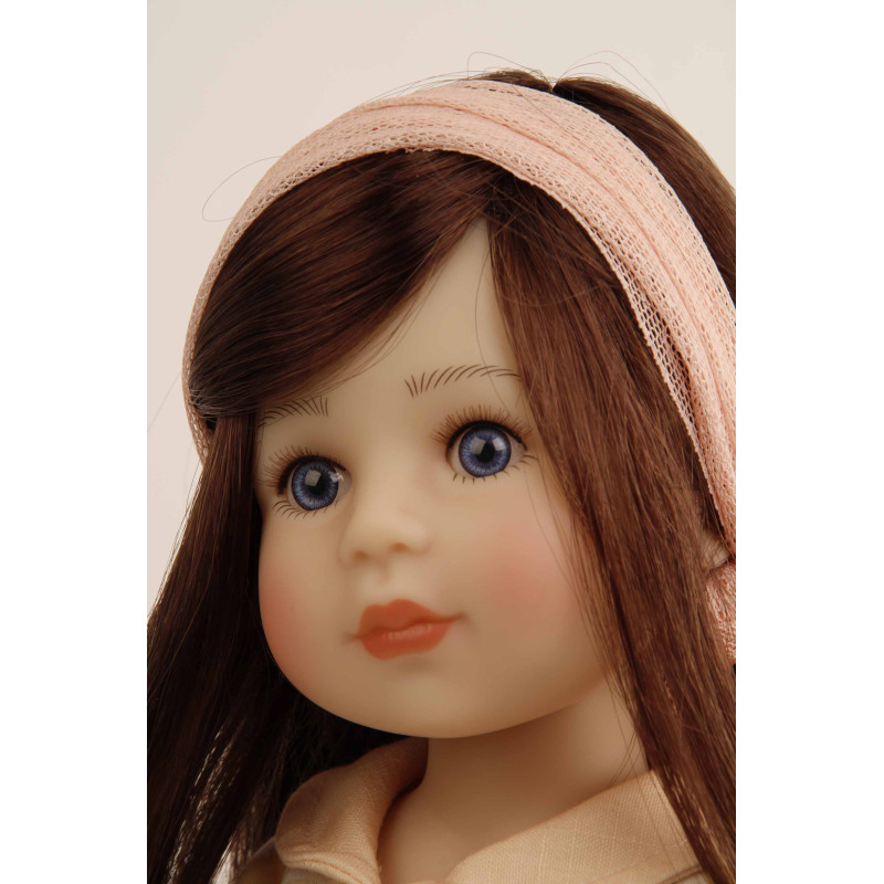 La Poupée Yella - 46 cm, a une longue chevelure Auburn (Brune) et les yeux bleus.