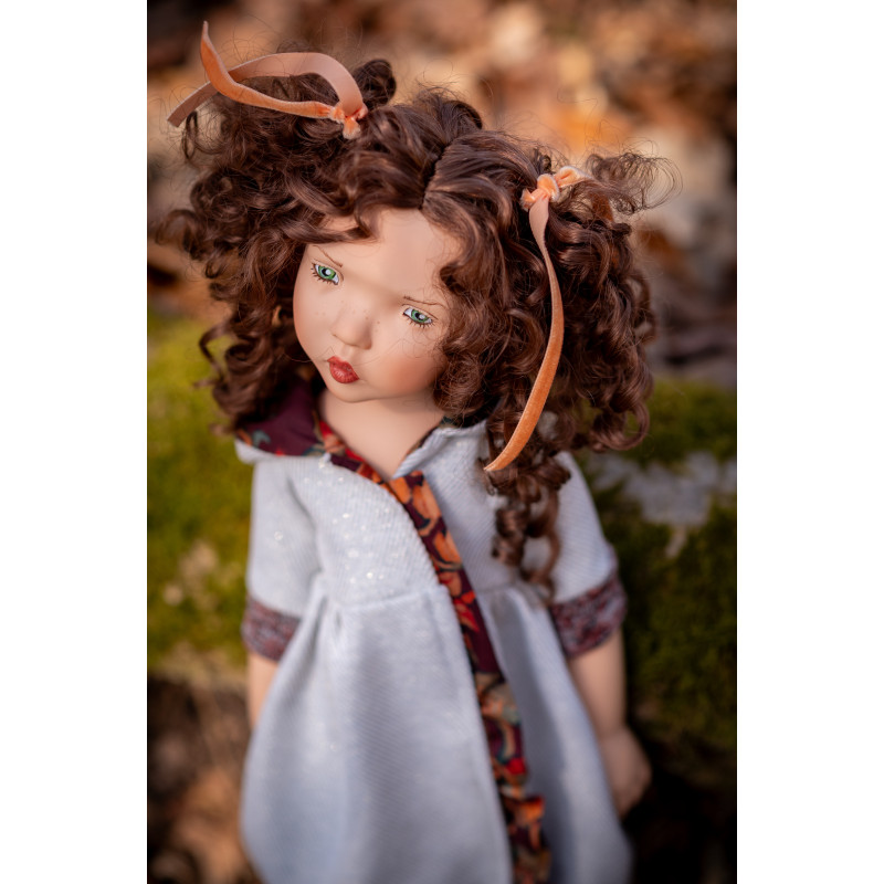 La poupée Karianne - Moule 2023 (comme Enora et Nawel) - a les cheveux bouclés bruns et les yeux verts.