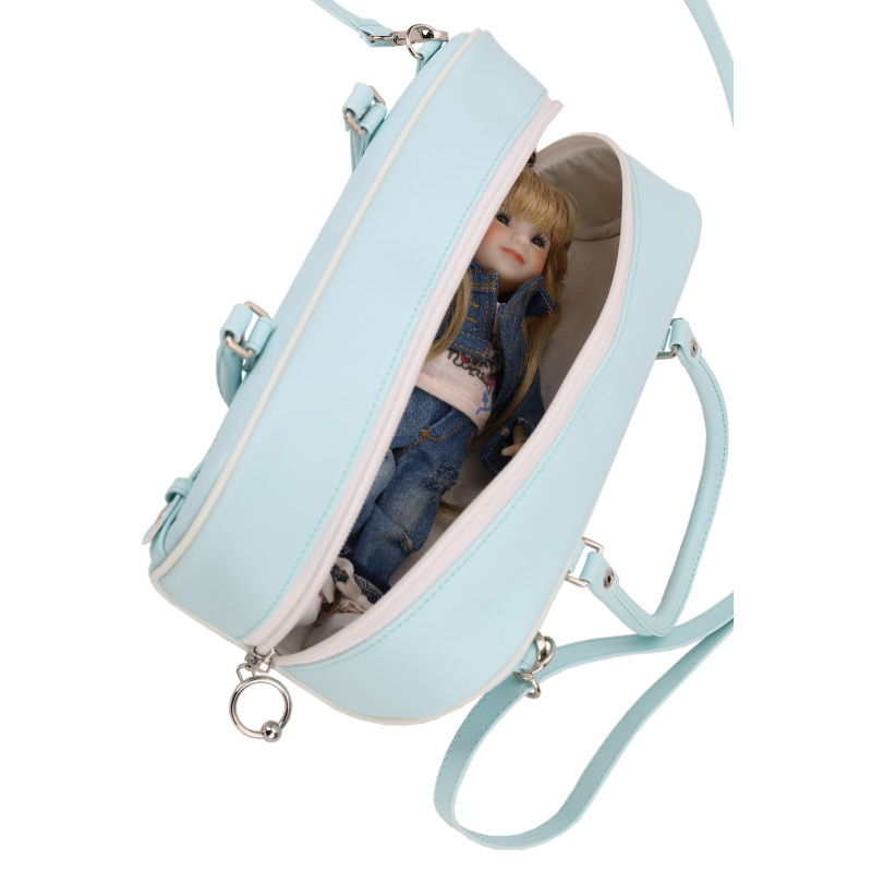 Vous recevrez également en cadeau un magnifique sac bleu de transport pour y glisser la Mini Sara (avec l'écusson de la marque Ruby Red Galleria).