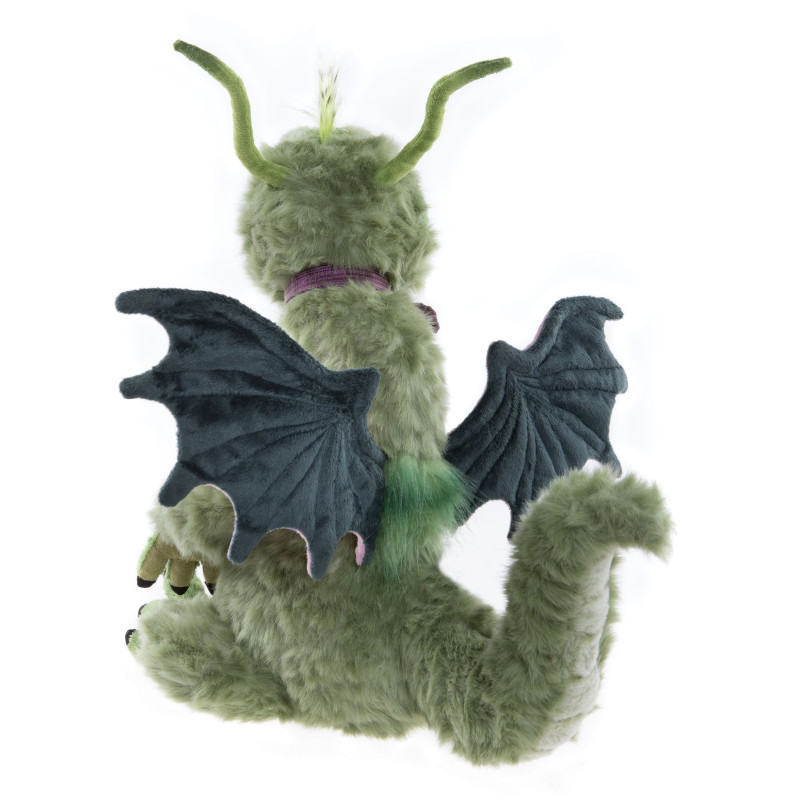 Cousu à partir de peluches douces luxueusement denses, aux nuances vertes, Jabberwocky a de grand yeux bicolores.