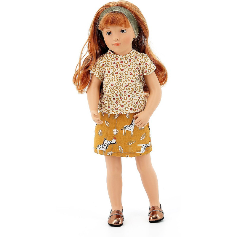 Linda porte une jolie blouse imprimée sur une jupe à motifs zèbres.