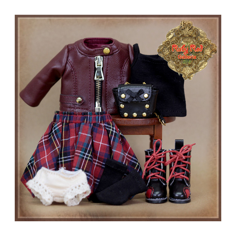 Jolie tenue Grunge dans les nuances bordeaux et noires :