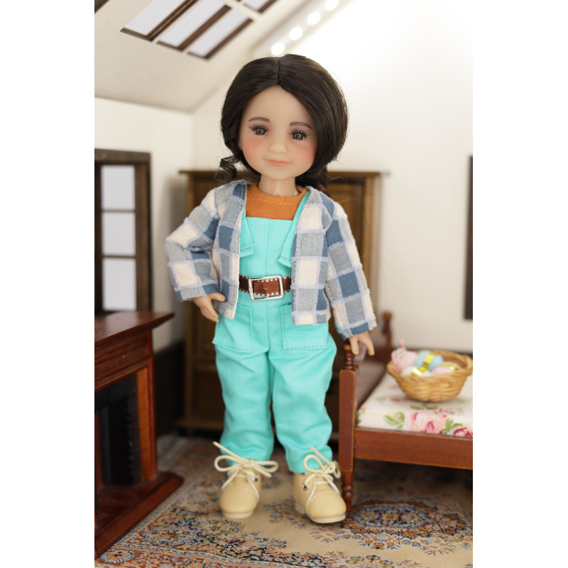 La tenue est complétée par une ceinture en soie marron et d'adorables chaussures à lacets beiges, ce qui la rend parfaite pour toutes les aventures de votre poupée. Conçu avec une attention particulière aux détails, cet ensemble rehausse non seulement le style de votre poupée, mais stimule également le jeu imaginatif.